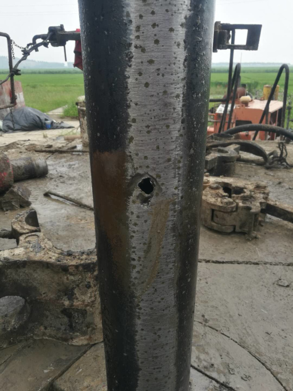 漏點(diǎn)是套管本體上有一個(gè)洞,附近有很多腐蝕坑。感覺(jué)套管受過(guò)外傷,也好像舊套管。詳見(jiàn)下面的圖片。