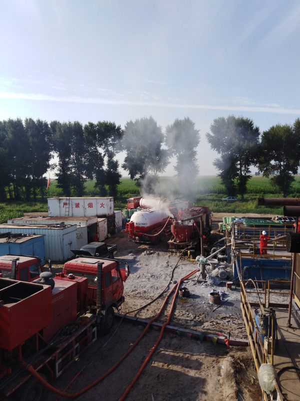2018年7月29日上午,大慶市東油鉆采有限公司固井隊(duì),施工這口井。注灰63方,替清水36.6方,施工**順利,一切正常。